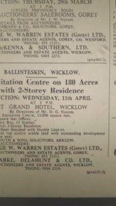 Harry Delahunt reported to the Irish Independent for 16-December 1977, that 1977 was a good year for property. Harry Delahunt said Farmland was averaging £2,000 per acre in Co. Wicklow, but in special circumstances had touched £ 3,000 per acre.