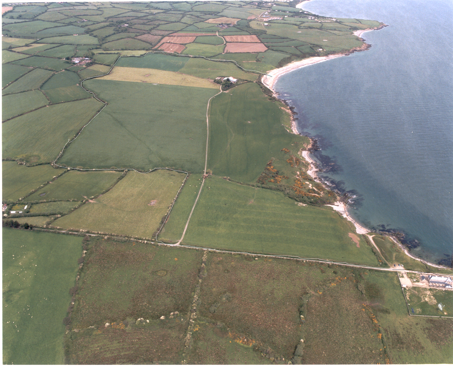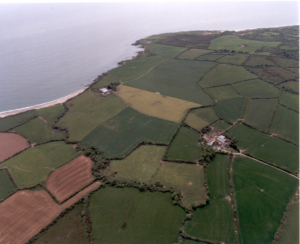 The Late Gerry Slattery was the brains behind organizing the Ariel photography with Mr. Peter Barrow, Gerry had taken one or two of the Seafront with his own camera and placed an advert for the property in the local paper on the 1st June 2000 using it. Celtic Helicopters arrived down with Peter Barrow in their green helicopter and landed in the field in Kilmichael opposite the Coastguard station around the end of May 2000, Gerry and I went over and the man who got out introduced us to the pilot who was Michael Collins, and Gerry joked: “Michael Collins flying the Fianna Fail helicopter,” Gerry brought up his own camera too and decided to get good value out of the helicopter for the day, Gerry organized to take photographs down a little further along the coast including Alfie Spencer’s and his wife’s property, Peter took photos from a North, East, South and West view of the Property as the pilot tilted the machine to suit the photographer, we then flew up home to Ahullen where he carried out a similar exercise. Gerry also took him over Gorey town to take some photos to have for a possible need in the future. We also flew over a particularly unusual circular shaped feature at Killnahue, Gorey, Co. Wexford. Gerry told me he drew the horse trainer Jim Bolger’s attention to it many years before, because of its length. I sold this farm in 2000 through Gerry Slattery and Robert Ganly and unfortunately the sale fell through in 2001 due to the Foot and Mouth disease outbreak. Sadly, Gerry died near the end of November 2001 and my father died the following month 6th December 2001. Things were a bit slow after the .com bubble burst and as Mrs. Betty McCarthy correctly stated there was a Lull in land prices in 2002, around the end of 2003 things began to pick-up and I had suggested a higher asking price to Mr. Denis Howell and the Late Gerry’s daughter Ciara after it was mentioned that Butlers farm at Coolintaggart was steep enough to hang your coat on had brought a great price with David Quinn in November 2003. The Kilmichael Kilmurry property was gone a bit stale and we decided to go to David Quinn for a fresh start after he got on well with the Coolintaggart farm.