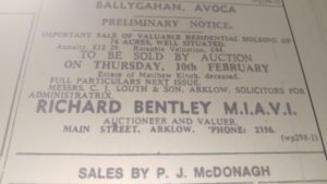 James Emmet selling Ballykilty house with 108 acres for Auction 31 May 1967